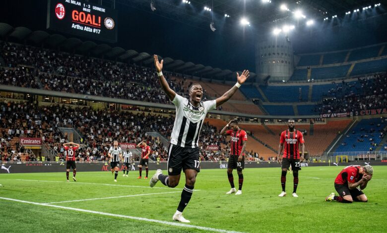 ميلان وأودينيزي: سقوط كارثي للروسونيري يهدد موسمه